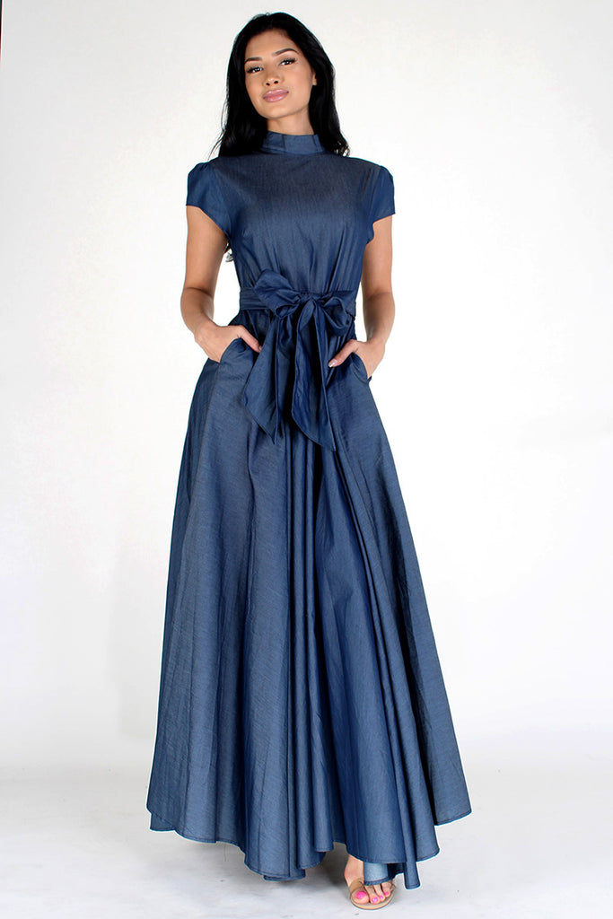 Denim"a-line" Maxi Dress with Waist Pockets