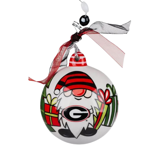 Beautiful and high-quality round hand painted ceramic University of Georgia Gnome Ornament.